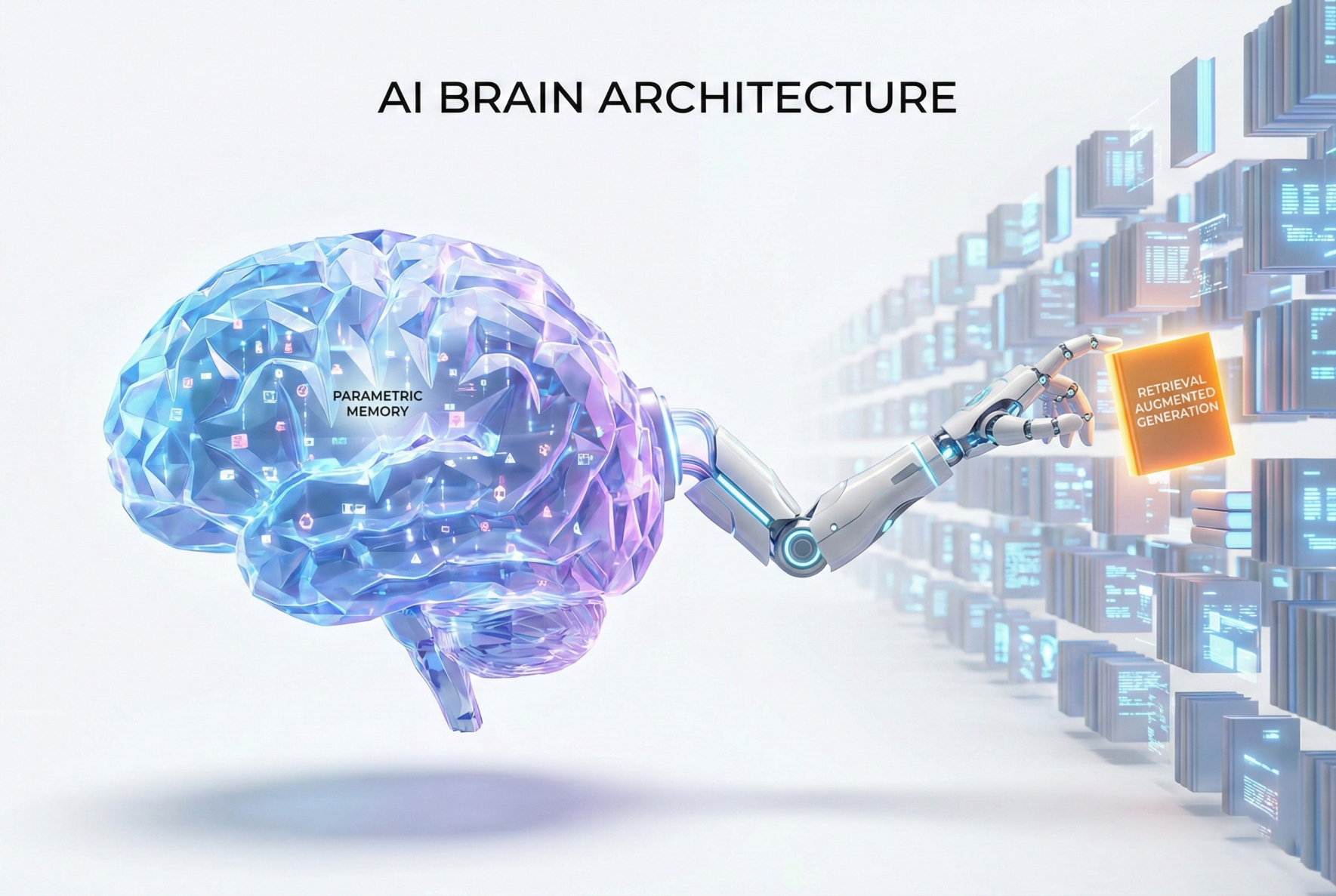 To understand why your brand might be invisible, you have to understand how these models "think." Unlike traditional search engines that rely on a static index of URLs, Large Language Models (LLMs) operate using two distinct types of memory: Parametric Memory ("Embedded Knowledge") and Non-Parametric Memory (Retrieval-Augmented Generation or RAG).